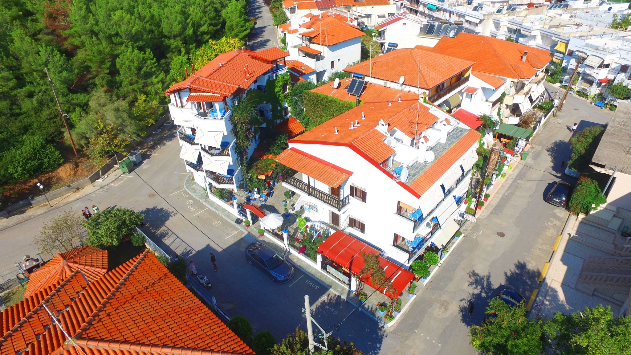 La o distant de 50 de km fata de Aeroportul Macedonia din Thessaloniki , ne gasesti pe noi situati la o distanta doar de 30 de metri fata de plaja , intr-un mediu calm , familiar si inconjurati de verdeata si flori , unde gazduim 16 apartamente traditionale si comfortabile construite cu un aer artistic din lemn si piatra potrivite pentru 2 sau 6 persoane cu tot comfortul necesar , complexul se invecineaza cu SuperMarkete , Taverne Grecesti si cafenele.