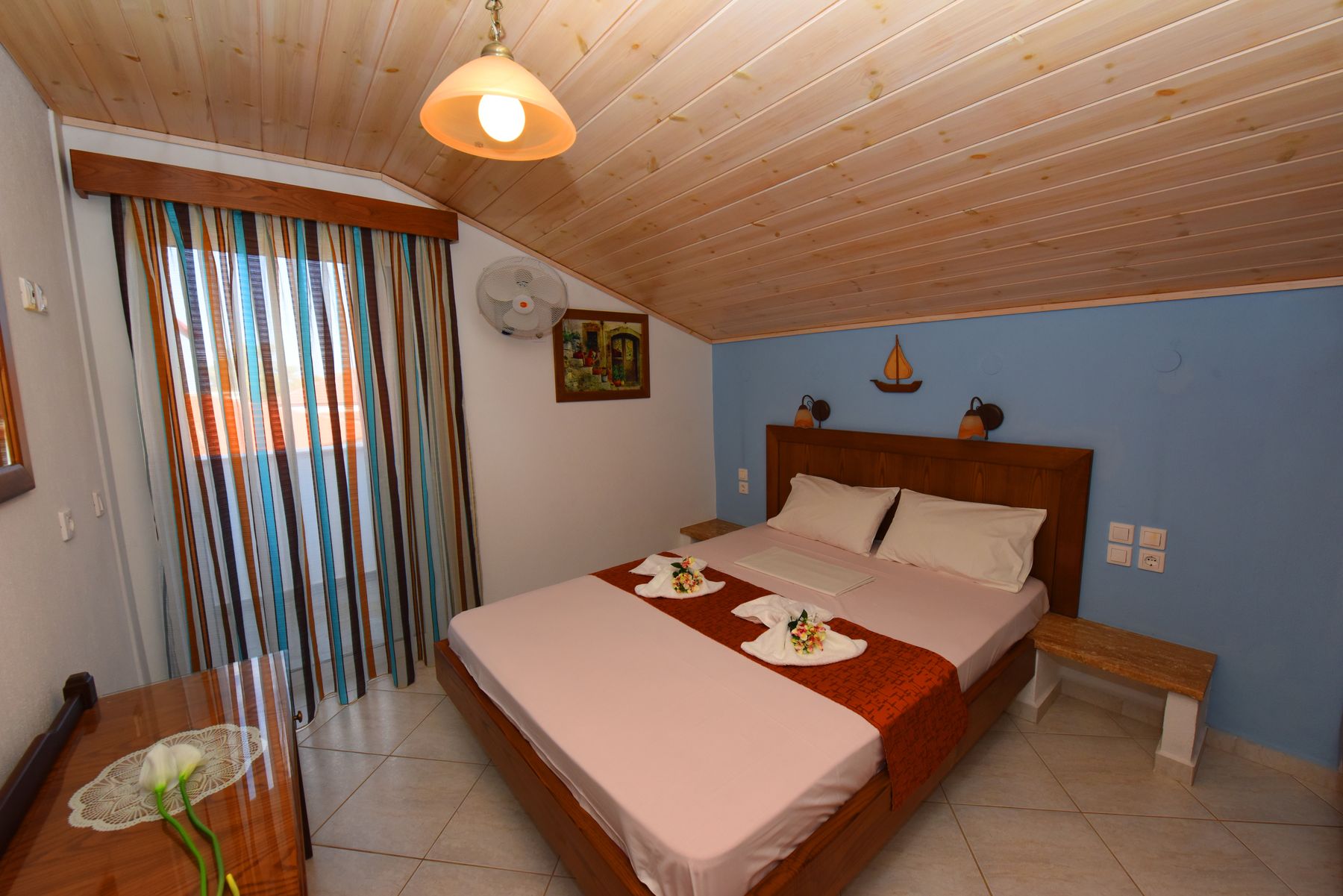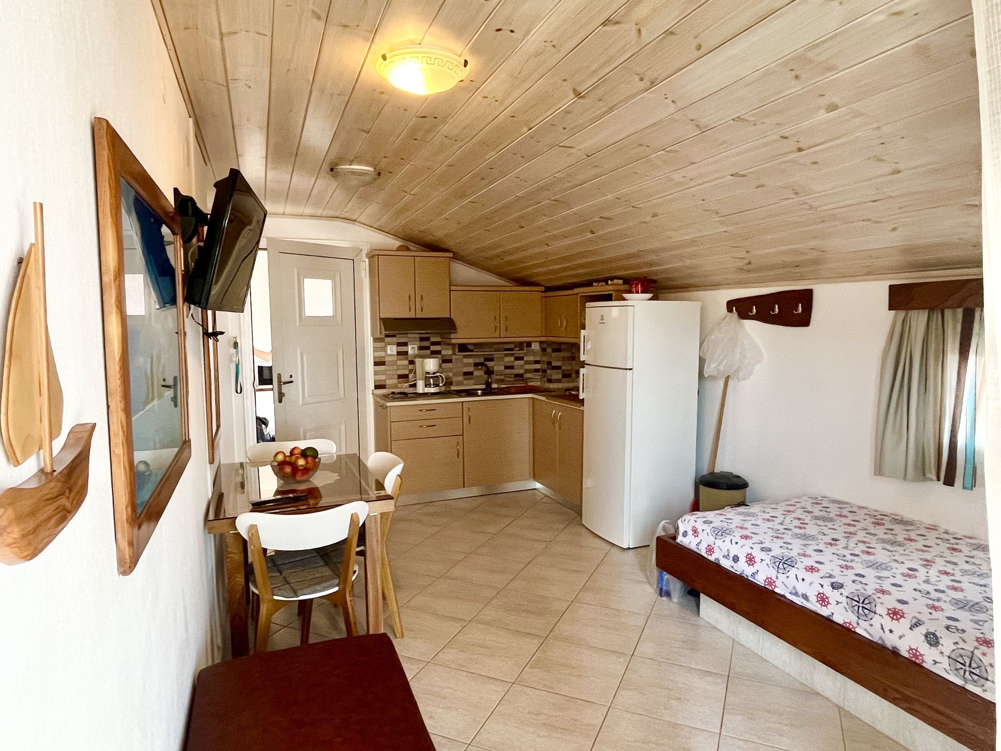 3 стаи, 2 спални с двойно легло + хол. Има две спални с двойни легла и отделен голям хол – кухня с едно единично легло, голяма тераса с изглед към морето.