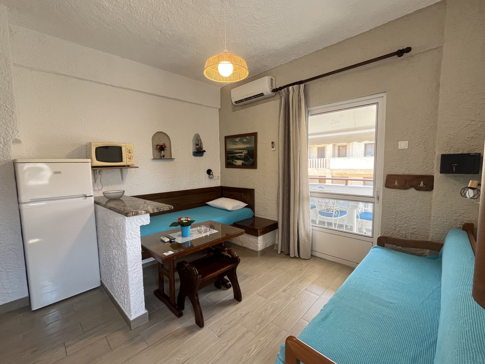 У приземљу се налази једна спаваћа соба са 1 брачним креветом. Одвојена дневна соба са једним креветом и малим каучем, кухиња, Климатизовано купатило и балкон.